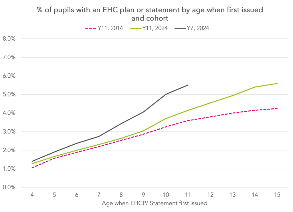 However, among more recent cohorts, the rate of pupils to ever have had an Education, Health and Care Plan (EHCP) is far higher than the percentage to have ever had a Statement of SEN among older cohorts.