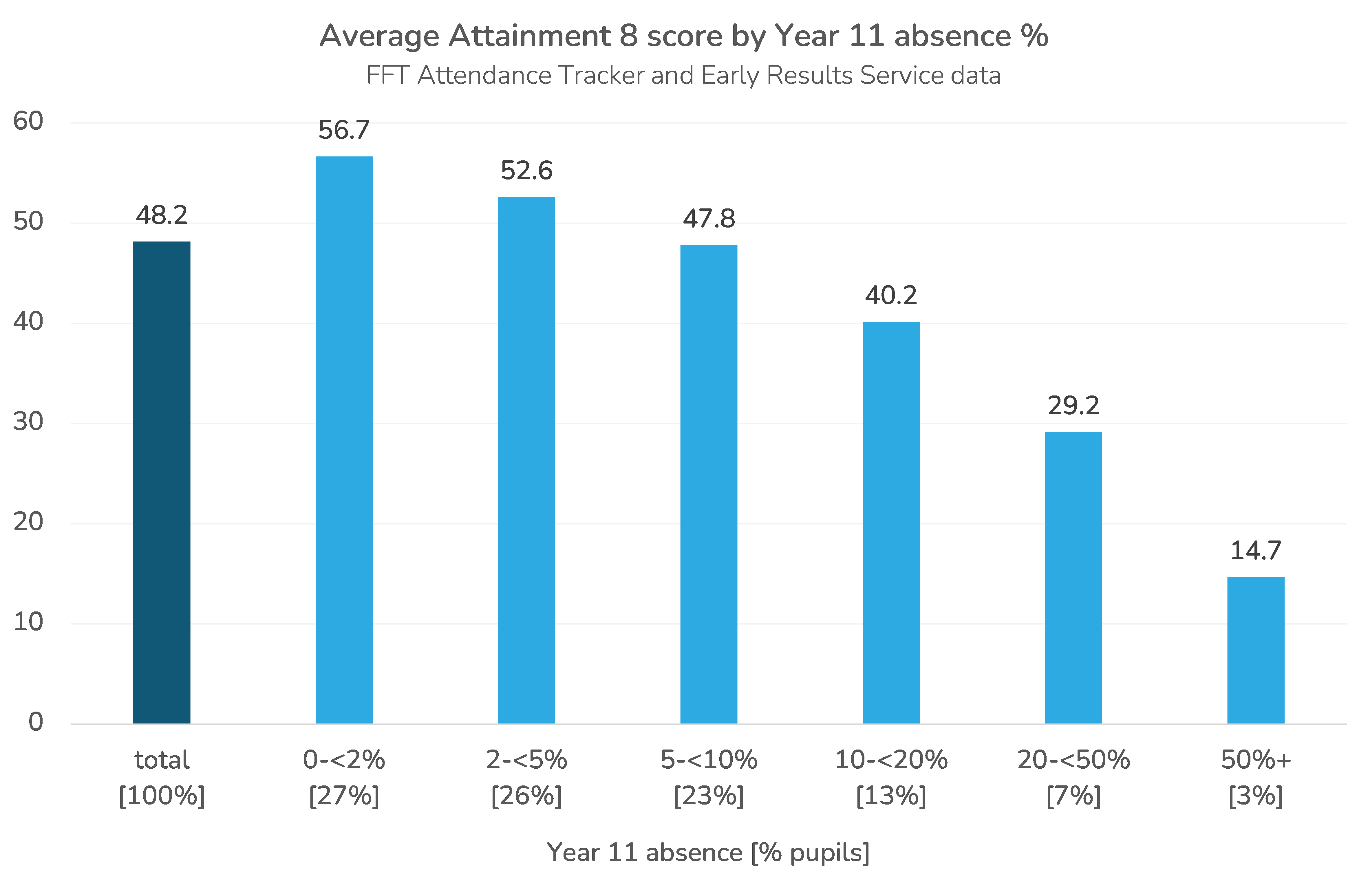 Let’s start by summarising the relationship between Year 11 absence and attainment.