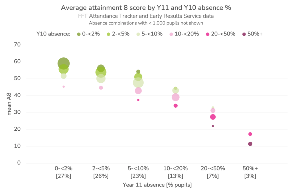 Finally, we’ve not shown that Year 11 absence isn’t important. Just that if you’re identifying pupils at risk of low attainment in Year 11 based on their attendance, it might be a good idea to look beyond the current academic year’s figures.