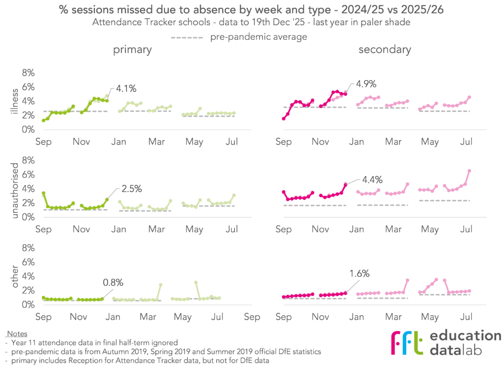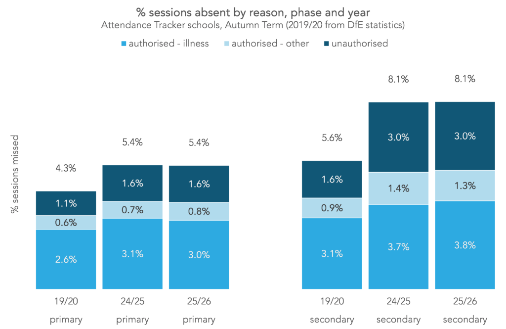 The patterns for unauthorised and other absence so far this year are almost identical to last year. Illness-related absence in the second half-term, however, looks different.