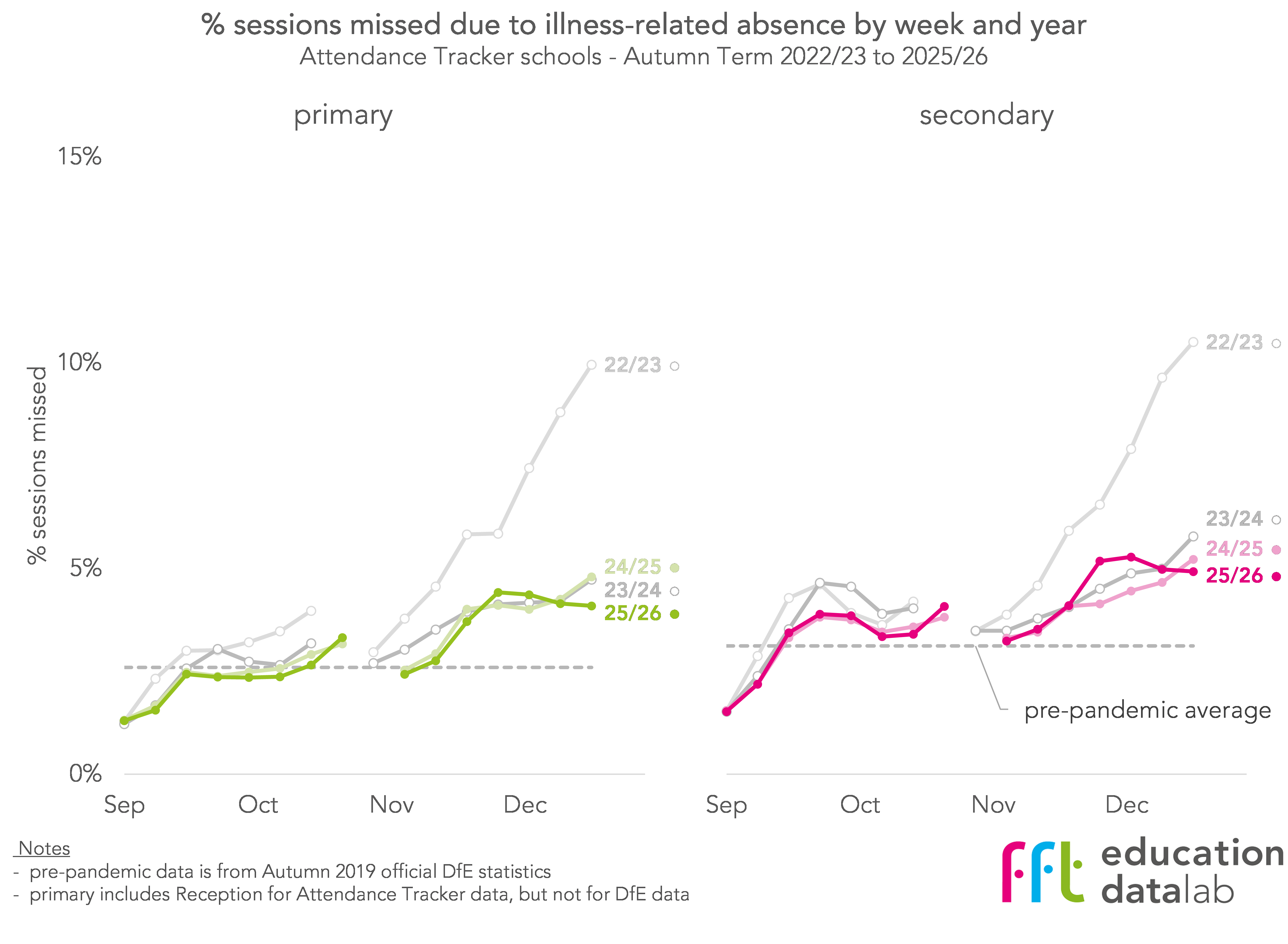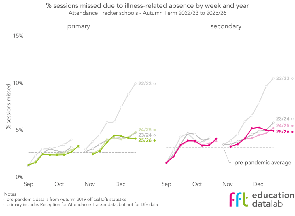 Thankfully, none of the past three years have seen illness-related absences as high as Autumn 2022.