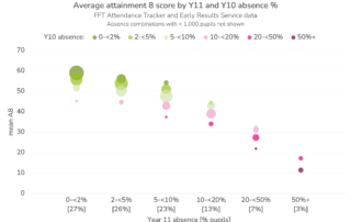 We explore how much of a relationship exists between absence in Year 11 and Key Stage 4 attainment once absence in Year 10 has been accounted for.