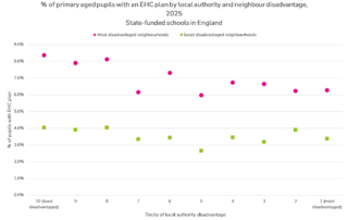Disadvantaged pupils resident in less deprived local authorities are more likely to have an EHCP than disadvantaged pupils resident in more deprived local authorities