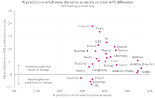 Using predicted grades and results submitted by 740 schools, we explore differences between predicted and actual grades, including variations by subject